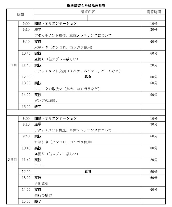 今後もこの重機を活用した重機講習会を実施できればと考えています。