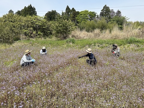 現在は、遊休農地の活用として「ビーガーデン(蜜源植物の花畑)」を整備し、養蜂にも力を入れています。また、周辺の環境整備の一環として竹林の伐採を行い、そこから「竹炭」を製造。その竹炭を農地に還元することで、土壌改良へとつなげる環境循環型の活動を実践しています。