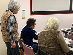 埼玉県新座市の公民館で20年にわたり続けられている高齢女性たちが主体のパソコン教室。市内の大学が開講するシニア向けのパソコン教室は受講希望者が多く、なかなか受講することができなかった高齢女性たちが大学教授や学生の助けを借りて2000年に開講した。「のんびり、やさしく、楽しく、行きつ戻りつ学ぶ」がモットーの教室では専門用語は殆ど使われない。最大の特徴は教わりながら、教える技術も身に付け、パソコン学習ボランティアになることを目指すところ。毎月2回、第2・4火曜日に開かれる教室では、学習してきた人が順番に講師となり、自ら用意したテキストを使って、ワープロソフトや表計算ソフトの使い方を教える。わからなければ直ぐに隣に座った人同士も教え合って、図形描画でブックカバーや年賀状のイラストを描いたり、表を作って計算式を用い、医療費計算や覚え書きを作ったりできるようになる。身に付けた技術で、市内の認知症予防グループのパソコンボランティアとして活躍する人もおり、今後の教室の更なる発展が期待される。