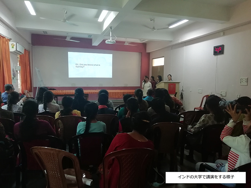この度は「社会貢献者表彰」という名誉ある賞をいただき、誠にありがとうございます。私たちNPO法人わぴねすは現代表である梶田が学生の頃に「中国のハンセン病問題」に出会ったことがきっかけで創設されました。梶田が中国のハンセン病問題に関わっていくうちに、世界ではハンセン病問題が深刻な国が他にもあるらしい、ということを知り、感染者数が世界で1番多いインドで活動を開始しました。