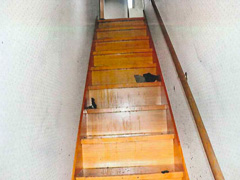 電話を切ると店主の妻から通報の間に2階に様子を見に行った店主が戻ってこないと聞き、様子を見に慎重に2階への階段を登っていきました。