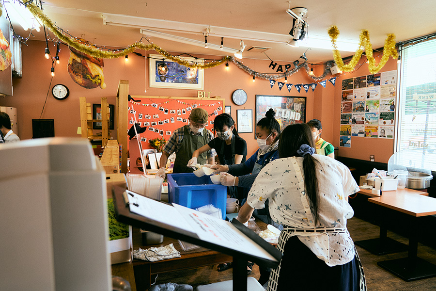 ほかに、次のお客様の分の食事代を支払う「ペイフォワード」制度、自分たちでは食べきれない食材等を、必要としている方に提供する「みんなの食糧庫」