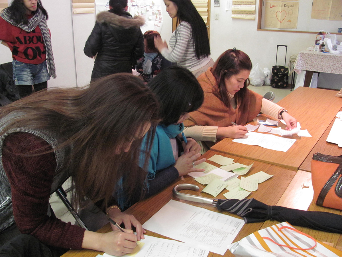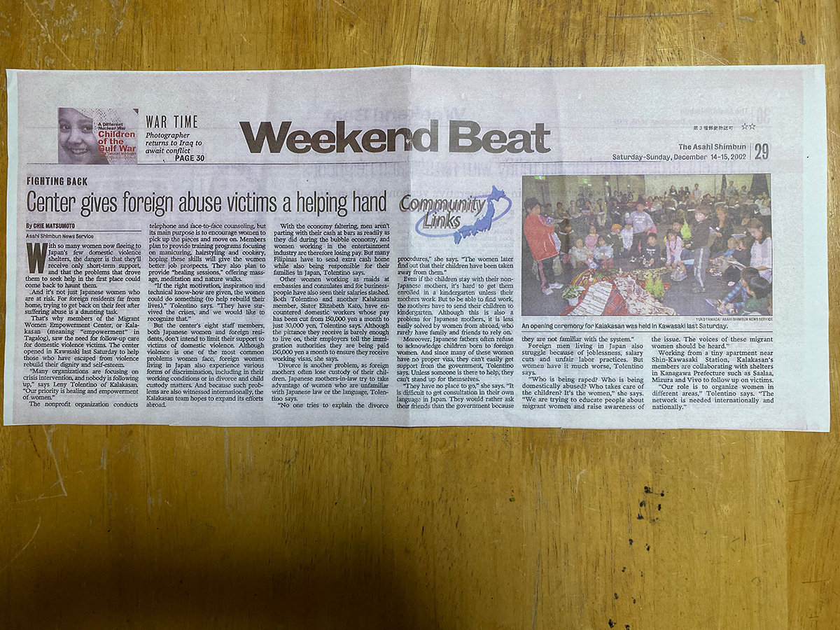 2002年、私たちが活動を始めた当初を振り返ると、当時は多くの移住女性(主にフィリピン人)が、同年に閉鎖となった前身の移住者相談オフィスを訪れていました。彼女たちは厳しい状況にさらされ、弱り果てていました。人身取引や搾取、あるいは配偶者からの暴力の被害者であった人もいました。また、継父や不良グループのメンバーから性的虐待を受けた若い女性たちとも出会いました。困惑し、落ち込み、人間としての尊厳や価値を奪われた彼女たちを目の当たりにしたスタッフや被害経験を持つ女性ボランティアたちは、移住女性たちが回復し、本来の力を取り戻すための支援センターの必要性を強く感じたのです。