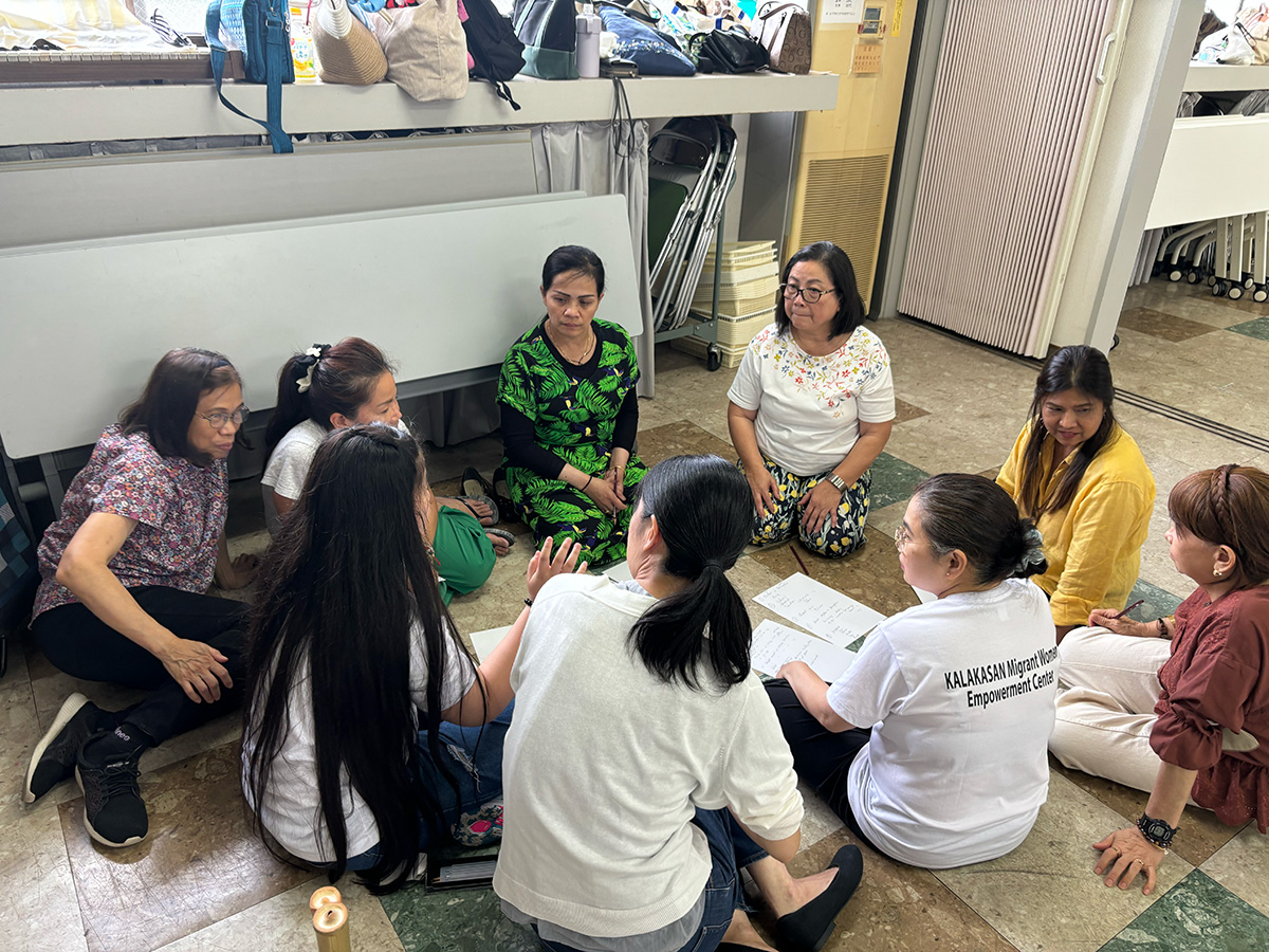 こうして生まれたのが「カラカサン」です。この言葉はタガログ語で「力」を意味します。人は誰しも生まれながらに内に力を宿しており、移住女性たちも搾取や虐待によってその力が弱まったとしても、決して消え去ることはありません。カラカサンは、特に移住女性が尊厳をもって平等に行動できる社会を思い描いています。力を取り戻した彼女たちがさらに他の人を力づけ、癒しと自己変革、社会や世界全体の変容へと歩みを進める。その姿に、私たちは移住女性が日本社会に積極的に貢献する姿を見ています。