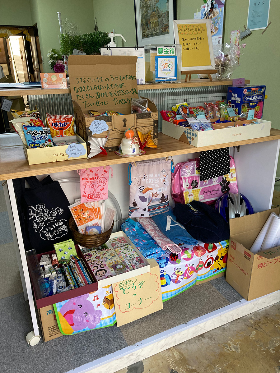 子どもを中心に誰もが取り残されない持続可能な地域社会をつくることを目的に、居場所の運営、非対面で24時間受け取り可能な冷蔵庫での食料無料配布と、より困難な家庭や子どもを個別支援するためイベント開催を行っている団体。代表理事の安藤綾乃さんは、2017年から、名古屋市昭和区内(11学区)の寺社やコミュニティセンターで巡回型子ども食堂をスタート。2019年に「つなぐ子ども未来」として一般社団法人化。巡回型子ども食堂で家庭が抱える様々な問題を知るにつれ、大変な子どもたちに常設の第3の居場所の提供をしようと、2020年に常設の「つなぐハウス」を開所。月・火・木・金・土に開催される食堂、放課後のたまり場、シニアの憩いの場、未就園児親子のくつろぐ場として様々な機能をもつ。さらに高齢者世帯、ひとり親家庭の子育て応援として夕食弁当を週2回を届ける。2022年から無人の公共冷蔵庫「みんなのれいぞうこ」を設置し食材支援を開始。LINE登録して申し込んだ人の中から、当選した人が24時間以内に食材を非対面でピックアップできる。現在8か所まで設置され、食堂の利用に抵抗がある人、様々な事情で食料を取りに行けない家庭にリーチしている。つなぐハウスを拠点に居場所支援とみんなのれいぞうこのLINE登録者800名のニーズを調査、学生服、おせちやクリスマスケーキを送る等の企画を展開中。子どもとその家庭を地域で支える役割を実現している。