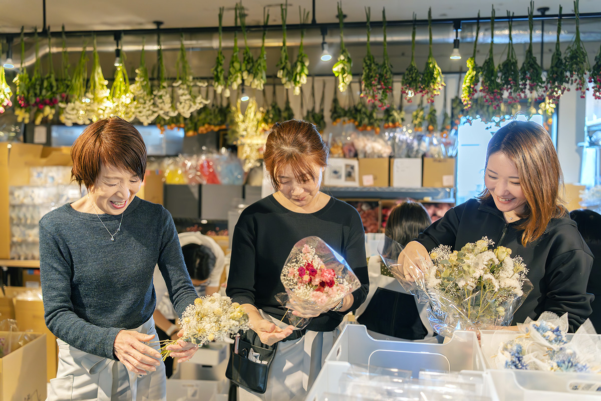 今、ローランズでは約140名の従業員が働き、そのうち約7割が障害や難病と向き合っています。私たちは、作業工程を10工程ほどに細分化し、スタッフの得意を生かして工程ごとのプロフェッショナルを育成しています。その結果、スキルを積み上げ、福祉サポートを卒業して一般就職へつながったスタッフも輩出してきました(A型からの一般就職数は全国平均の5倍)。花を介して、スタッフが自信をもって社会とつながっていく姿は、私たちにとっても大きな喜びです。