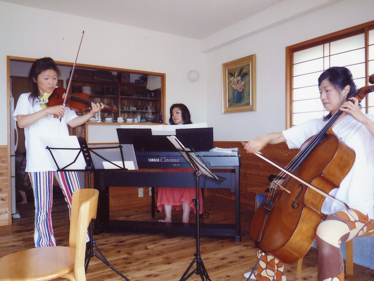 春は加茂川べりを水鳥や草花を愛でながらお散歩。夏は水遊び、冬は堤防で草スキー、空き箱で工作もしました。また、交響楽団の方の協力で親子で楽しむ音楽会も開きました。