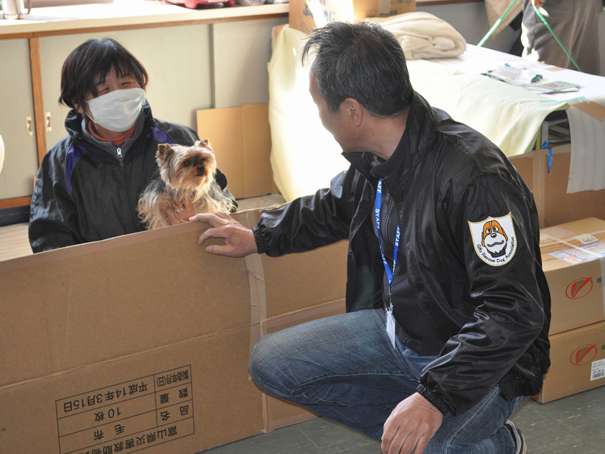 2011年東日本大震災の時は何か出来ないかと、はじめは災害救助犬と共に行動していましたが、犬たちはどうしているのだろうと避難所を回り、一緒に暮らせないワンコたちを無償で預かりお世話をすることにしました。