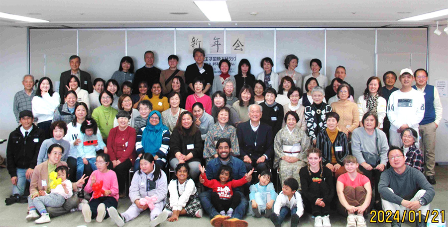 八王子国際友好クラブ(HIFC)は同じ地域に暮らす外国人との相互理解を深め、国籍や民族、言葉の違いに関わらず互いを尊重し、共に育ち共に社会参画できる地域社会を目指す市民団体として、北田玲子さんが1987年に設立。北田さんが英国で生活した際、外国人向けに地域の情報提供や交流会などを行う団体や近所付き合いに助けられた経験が発足のきっかけ。市の広報紙を英訳した情報誌の発行から始め(後に7言語版発行)、1992年には公民館と協働で八王子で初の日本語教室を開始した。1991年に入管法が改正されると、より多くの外国人が生活者として同市にも居住するようになり、HIFCにも様々な相談事や依頼が寄せられるようになった。一市民団体では対応が難しく、より広範囲で外国人市民の暮らしの課題に対応できる組織の設置を市へ働きかけた結果、2008年に八王子国際協会(HIFCは団体会員として加入)が設立され、以降それぞれの特徴を活かし役割を分担して活動することにより同市の多文化共生の街づくりに貢献している。HIFCでは現在、日本語教室の運営を行う「日本語グループ」、各国の文化や日本の文化を紹介する「交流グループ」、会員のステップアップのための「研修グループ」、会報ラポールやホームページの編集を行う「会報・ホームページ」、様々な話題を話し合い、考える「土曜談話室」や書道サロンなどの「サークル」の5分野で活動を行っている。(会員数:約170名、外国人、日本人ほぼ同数)