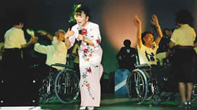 この度、社会貢献者表彰という栄誉ある賞をいただき、私にとって口では言い表わせない程の驚きと大きな喜びの気持ちでいっぱいです。歌手としてデビュー以来28年間、歌を通して慰問公演、ボランティア活動等で少しでも多くの人のお役にたてればと車椅子を贈り続けることが出来ました。この活動は、温かい気持ちで一緒に歩き続けてくれた多くの仲間達の力です。感謝の気持ちでいっぱいです。