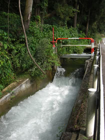 私は慌てて外へ出て駆け寄ると、男性が用水路内の鋼材を胸で抱く形で掴まり、今にも流されそうな状態であった。救助をしている 3 人の内、2 人が用水路の淵から男性を引き上げようとして、もう 1 人は鋼材に乗り男性の腰のあたりを持ち上げようとしていた。