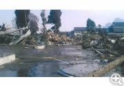 余震の続く中、妻と子ども三人の安否を心配しながら両親と三人で我が家の二階で海面の中全壊した二階で一夜を過ごし、翌朝当たり一面を見渡すと、瓦礫の山々で見るも無残な光景でした。これが本当の津波の爪痕なのかと言葉にならなかったのが現実でした。
