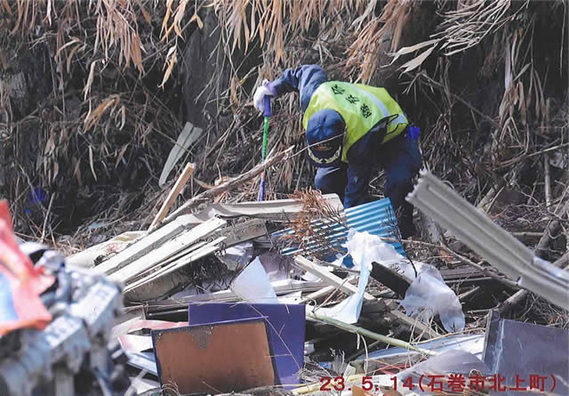 これは、我々隊友会にしか出来ない事であると認識し、五月中旬から六月上旬迄の間、要請があった隊員の立会のもと(隊員が遠方の場合はその親族が立会)被災されたと思われる地域で、毎回約13人位で捜索を実施しました(約140人日)。