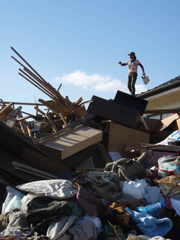 「震災当日はどうでしたか?」と、都会からやってきたボランティア。